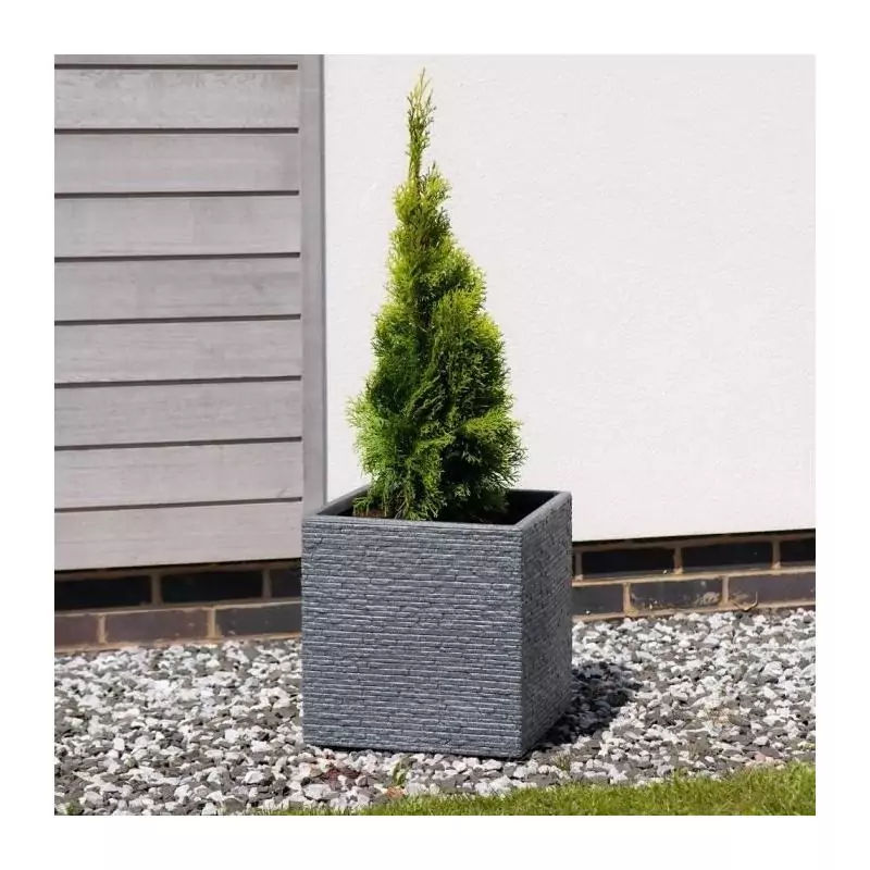 Le Pot de fleur STRATA L Carré en coloris Slate est un magnifique ajout à votre espace extérieur. Avec des dimensions de 38cm x 38cm x 39cm, ce pot de fleur offre amplement d'espace pour vos plantes préférées.