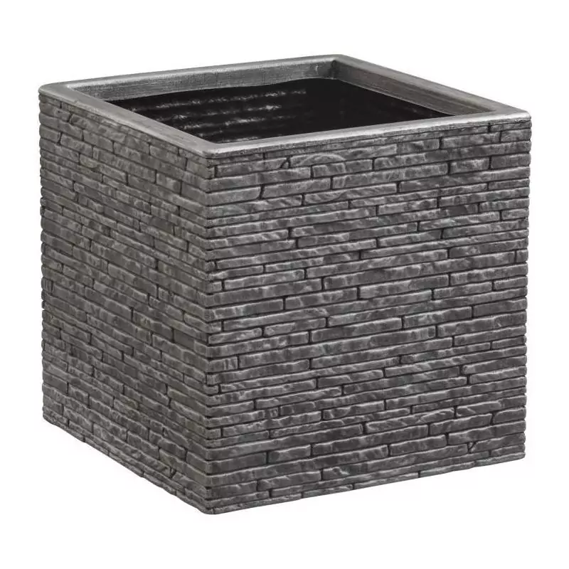 Pot de fleur - STRATA - L - Carré - Slate - 38cm SQ x 39cm H - Couleur Etain