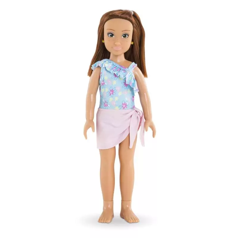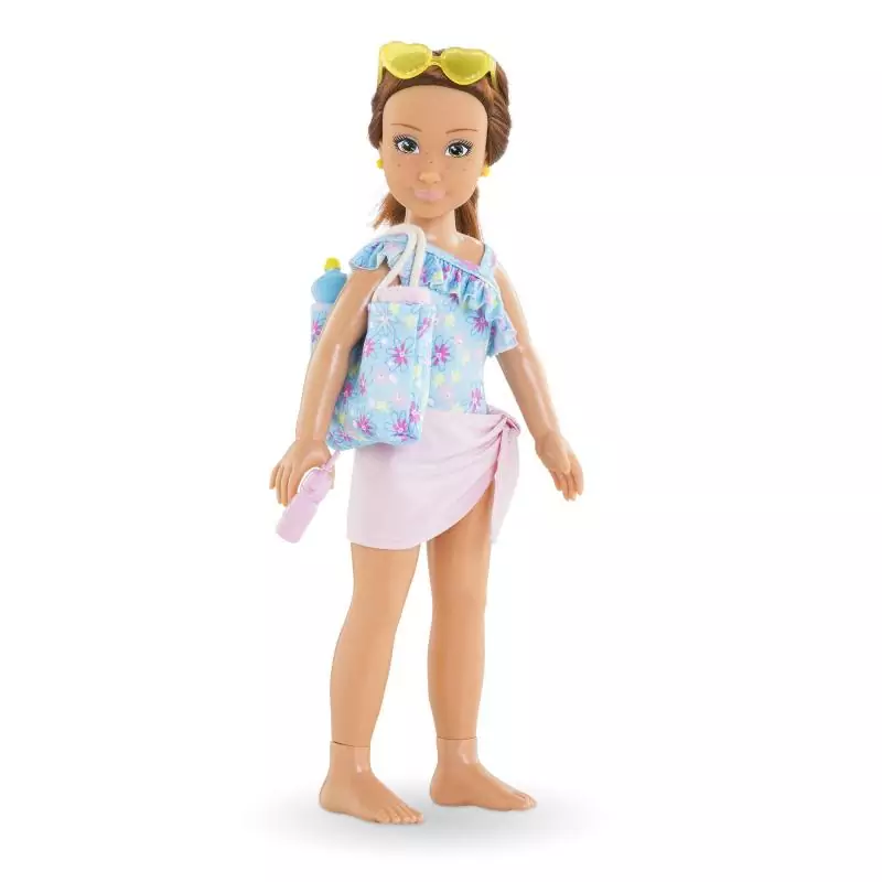 Le coffret Zoé à la plage est composé de Zoé, une poupée mannequin de 28 cm, et de 5 accessoires : 1 crème solaire protectrice, 1 paire de lunettes de soleil, 1 gourde, 1 serviette de plage et 1 sac de plage. Zoé a un joli visage naturel aux traits fins qui sent bon la vanille. Ses yeux sont peints et elle possède des cheveux mi-longs roux. Elle porte 1 joli maillot de bain, 1 paréo assorti et 1 paire de boucles d’oreilles amovibles. Zoé a un corps réaliste de jeune adolescente. Elle tient assise et debout toute seule. Les Corolle Girls sont déclinées en plusieurs modèles et disposent de coffrets dressing pour encore plus de jeux ! Dès 4 ans. Corolle Girls, mes meilleures amies