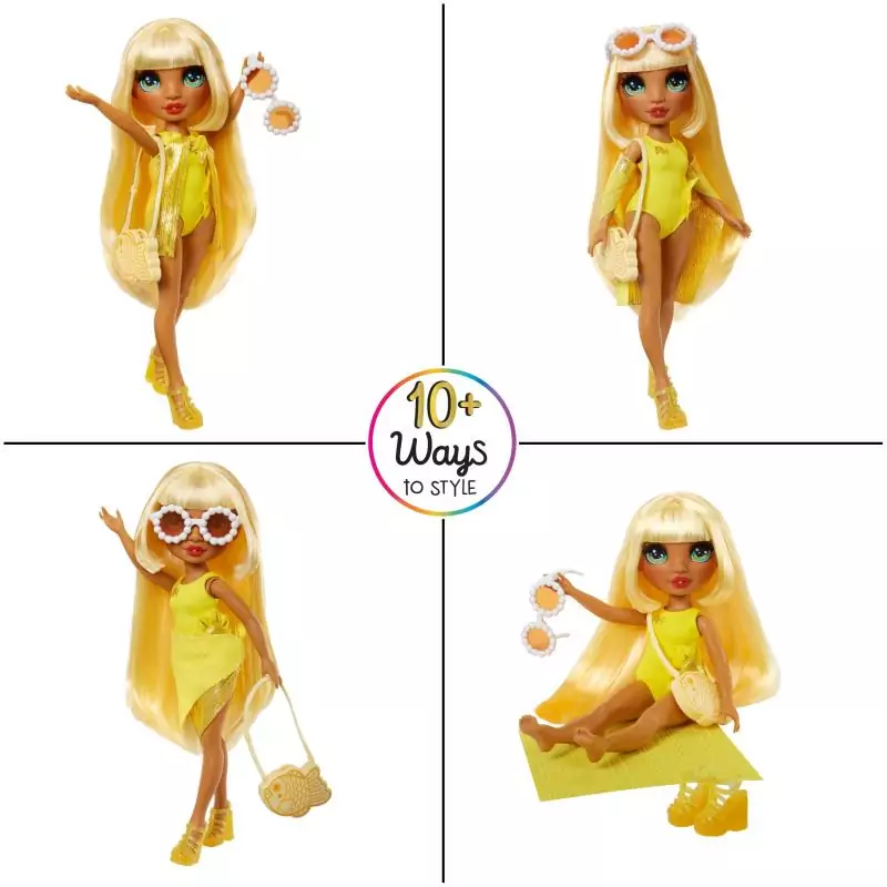 Rainbow High Swim & Style - Poupée mannequin ariculée 27 cm - Sunny (Jaune) - Maillot de bain + Paréo - a partir de 4 ans