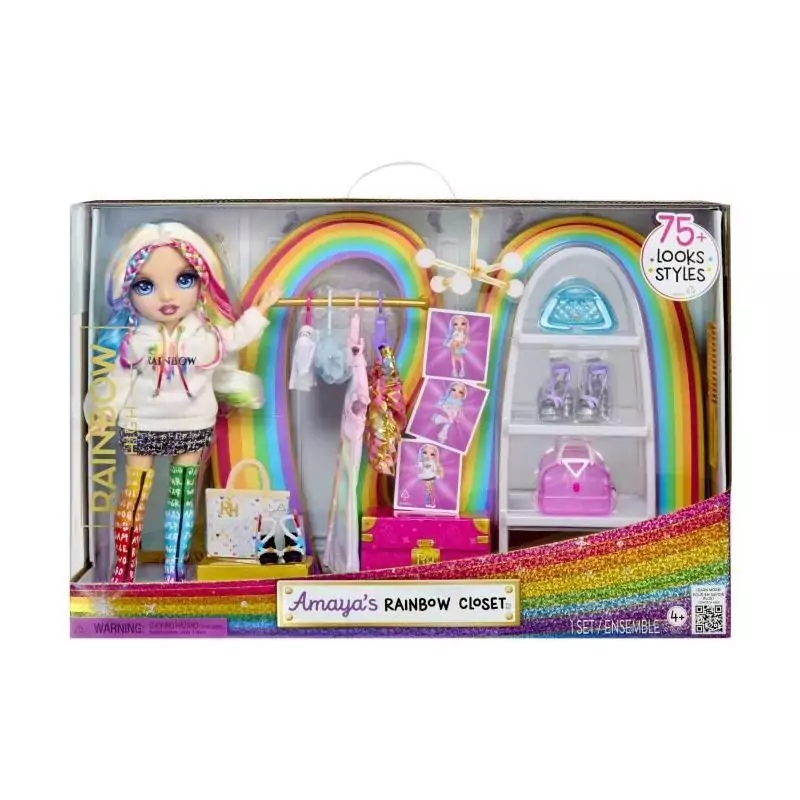 Le Rainbow High Amaya's Rainbow Closet Playset est le parfait accessoire pour les fans de poupées et de mode. Ce superbe ensemble offre aux enfants la possibilité de créer des tenues éclatantes et uniques pour leurs poupées Rainbow High préférées.