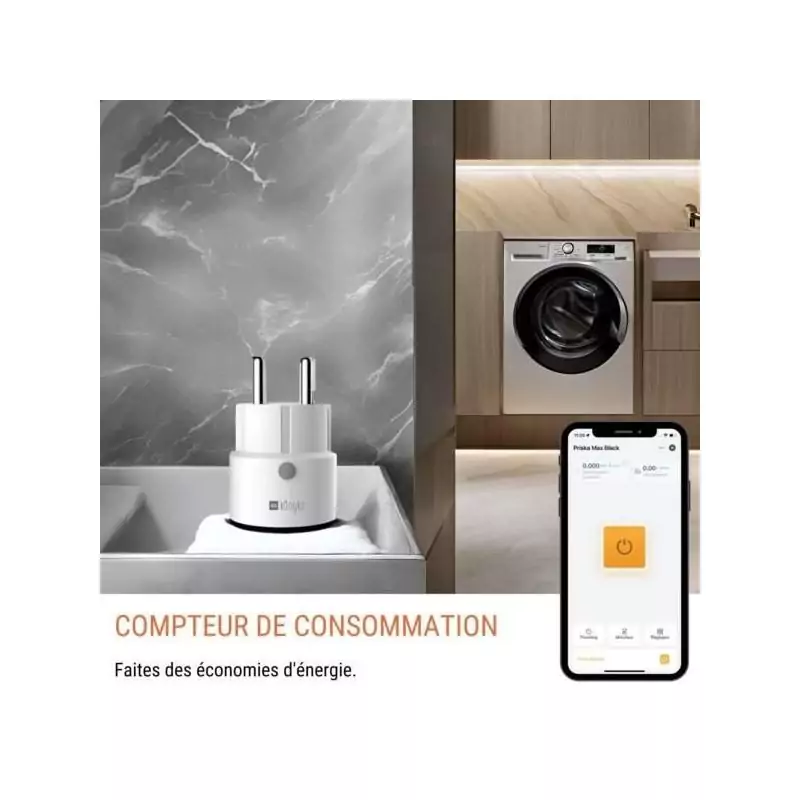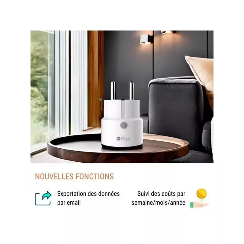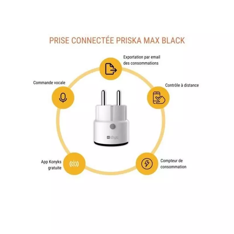 Mini prise intelligente - KONYKS - Priska Max Black FR - Wi-Fi+BT - 16A - Blanc