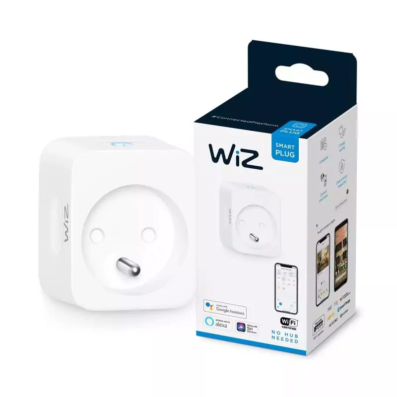 WiZ Prise intelligente. Installation prise en charge: Intérieure, Couleur du produit: Blanc, Meilleures utilisations: Maison. Technologie de connectivité: Sans fil, Technologie sans fil: Wi-Fi. Puissance d'alimentation max.: 2300 W, Tension d'entrée AC: 230 V, Type de prise: Type E. Largeur: 49 mm, Profondeur: 59 mm, Hauteur: 58 mm. Largeur du colis: 7,1 mm, Profondeur du colis: 7,1 mm, Hauteur du colis: 16,1 mm
