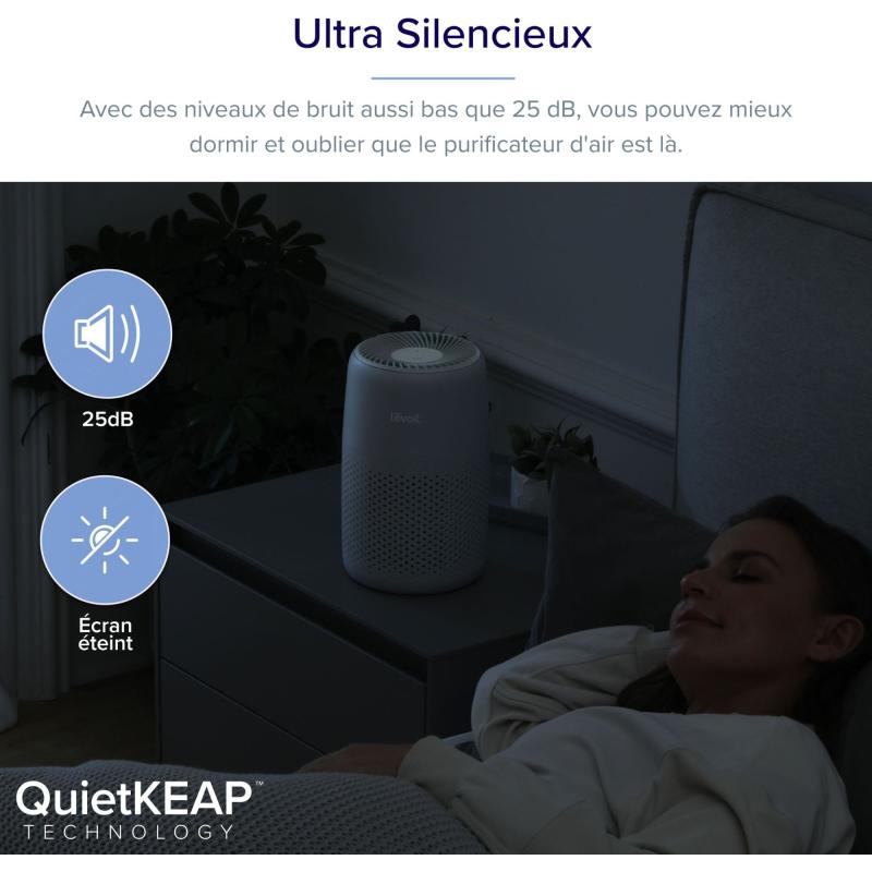 Purificateur d'air - Levoit - Core Mini Pro - Filtration 3 étapes - Surface jusqu'a 16 m² - Capteur qualité air - 7 W - Gris