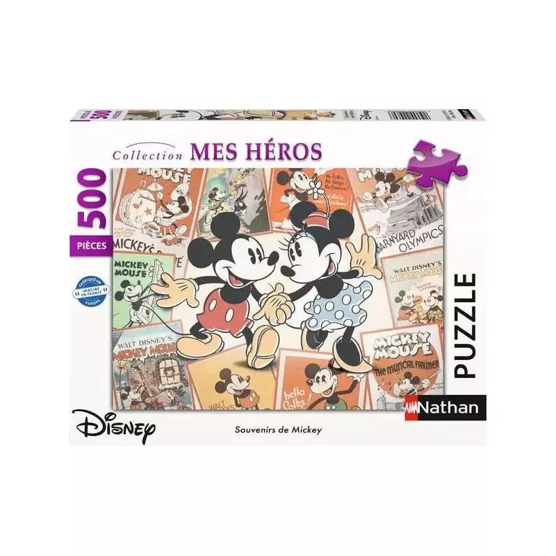 Nathan puzzle 500 p - Souvenirs de Mickey / Disney. Nombre d'énigmes: 500 pièce(s). Age recommandé (min): 10 an(s), Age recommandé (max): 108 an(s)