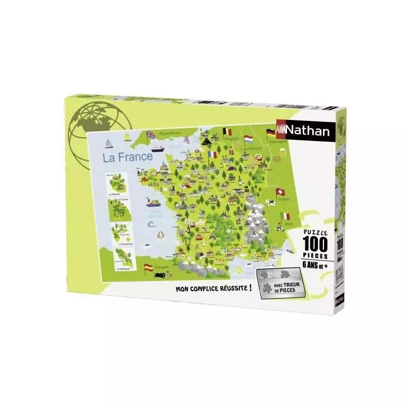 Puzzle enfant 100 pièces - Carte de France - Nathan - Trieur 3 compartiments - Dès 6 ans