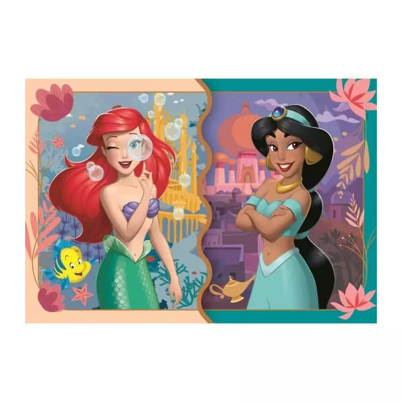 Plongez dans l'univers magique des princesses Disney en assemblant ces deux puzzles de 20 pièces chacun. Retrouvez vos héroïnes préférées telles que Cendrillon, Ariel, Blanche-Neige et bien d'autres encore. Les illustrations magnifiques et colorées vous transporteront dans un monde féerique où tout est possible.