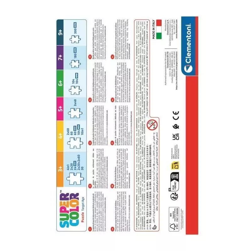 Ce puzzle CLEMENTONI est non seulement amusant, mais il permet également de développer la concentration, la patience et la coordination. Parfait pour occuper les après-midis pluvieux en famille ou pour se relaxer après une longue journée de travail.