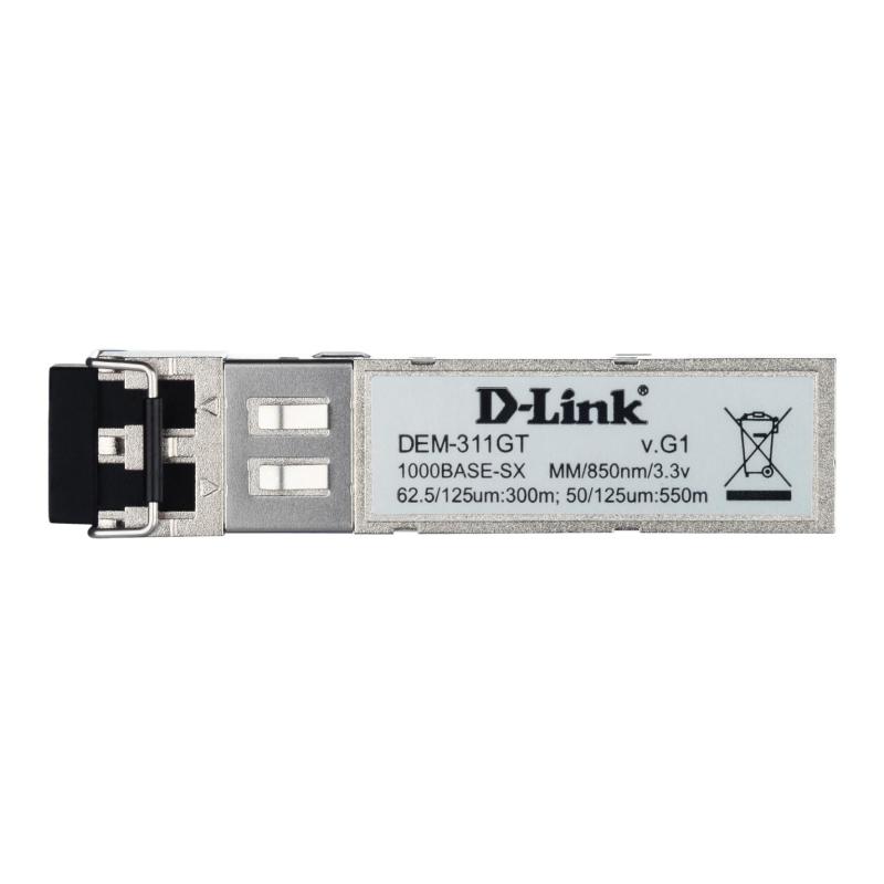 D-Link DEM-311GT. Type d'émetteur-récepteur SFP: Fibre optique, Débit de transfert des données maximum: 1000 Mbit/s, Type d'interface: SFP. Couleur du produit: Métallique, Matériau du boîtier/corps: Métal. Tension maximum: 6 V. Certification: MSA, RoHS. Largeur: 13,8 mm, Profondeur: 57,2 mm, Hauteur: 8,5 mm