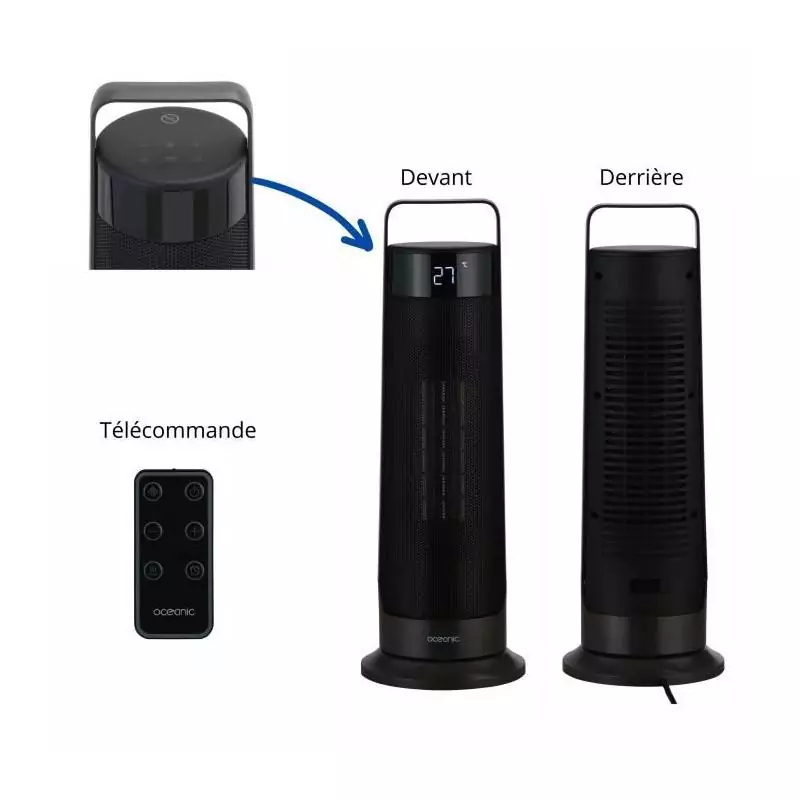 Radiateur soufflant oscillant - Céramique - OCEANIC - 2000 W - Télécommande - Noir