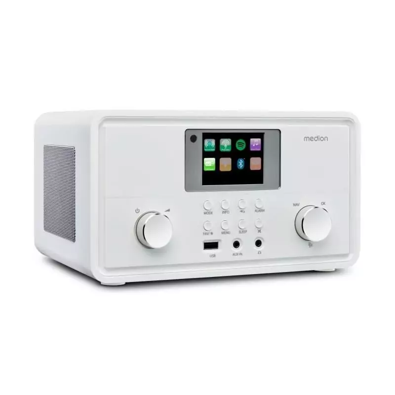 Profitez d'une expérience d'écoute sans limites avec la radio internet MEDION. Plongez dans un univers musical riche et varié, où que vous soyez dans votre maison. Offrez-vous le luxe d'une qualité audio haut de gamme avec cette radio polyvalente et performante.