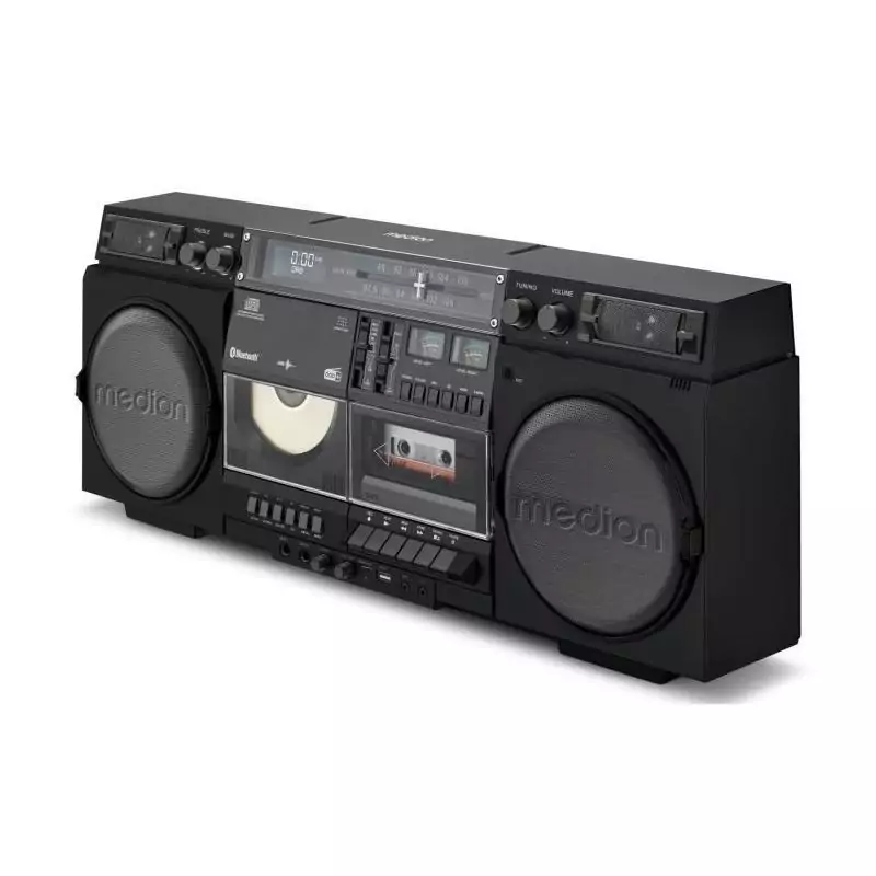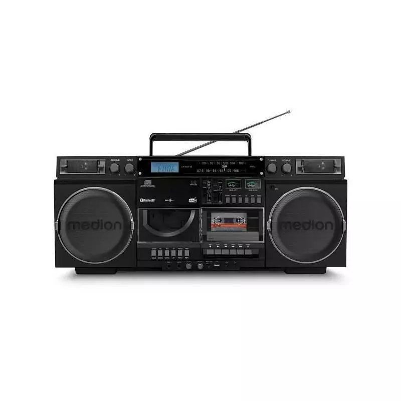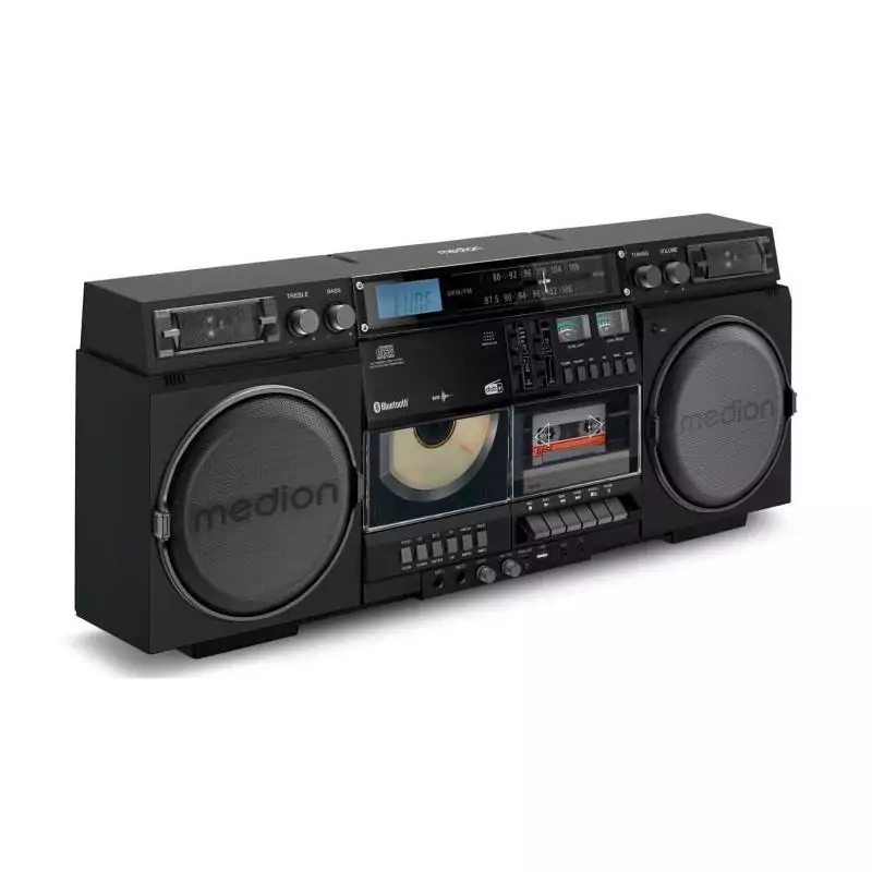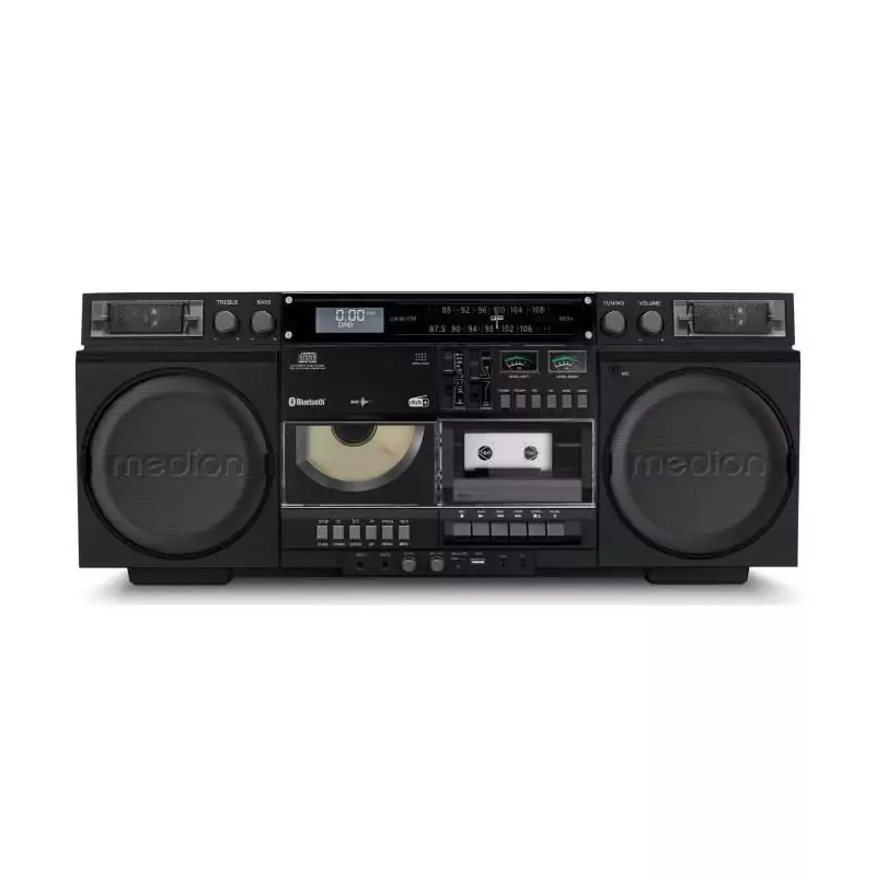 Ne manquez pas l'occasion d'ajouter ce joyau rétro à votre collection audio. Offrez-vous le Ghetto Blaster - MEDION - Vintage - DAB+ - CD/Cassette/USB/MP3 - 2x10W RMS - Noir dès aujourd'hui et plongez dans une expérience musicale immersive et inoubliable.
