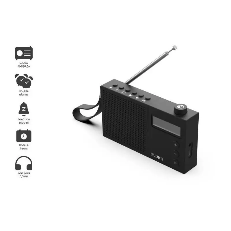 Radio-réveil EVOOM EGY Noir - FM et radio DAB+ - Batterie Piles/USB - 2 alarmes