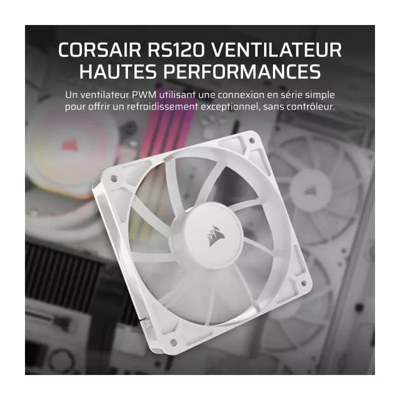 Optimisez la ventilation de votre PC avec le ventilateur CORSAIR RS120 en blanc et profitez de performances maximales en toute tranquillité!