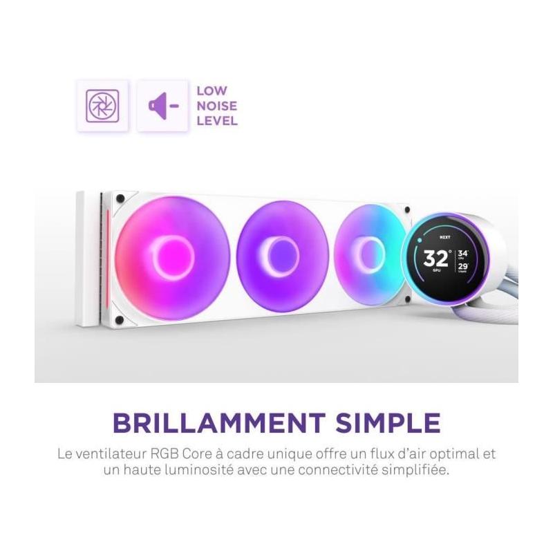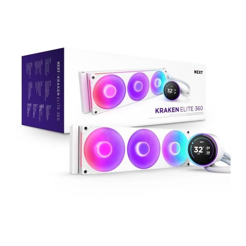 Watercooling - NZXT - RL-KR36E-W2 - Kraken Elite 360 RGB - Écran 2.72, panneau RGB personnalisable et ventilateurs RGB - Blanc