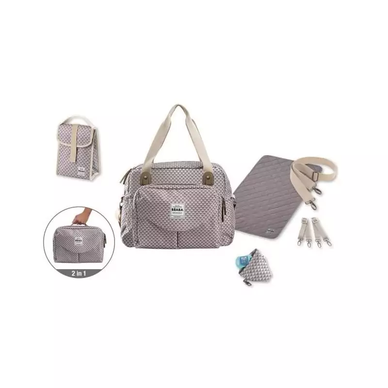 BEABA, Sac a langer Genéve II, Modulable, Grande contenance, Rangements multiples, Pochette avant amovible, Gris