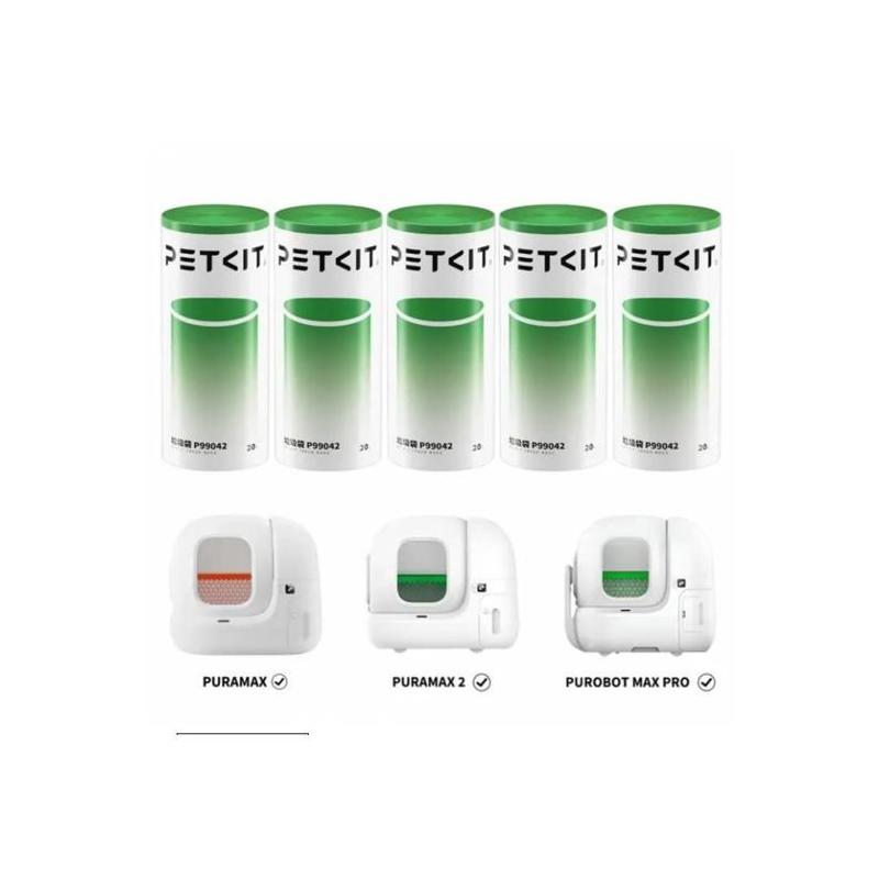 Lot de 5 rouleaux de 20 sacs poubelle - PETKIT - 8 L - Pour litiere automatique - Vert