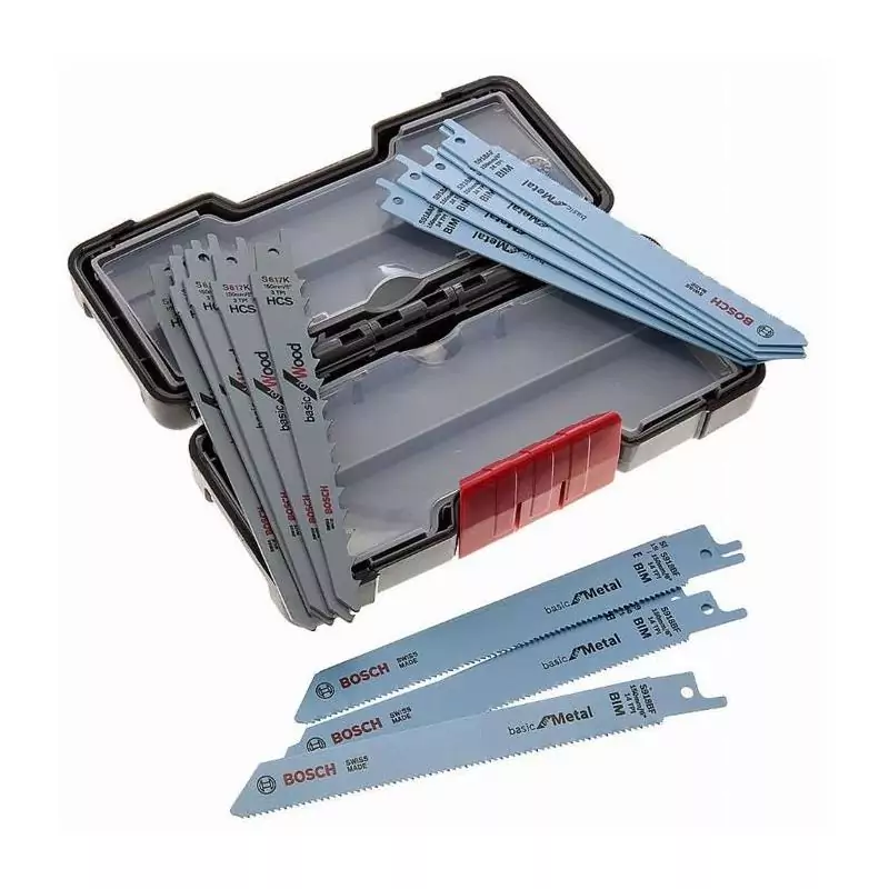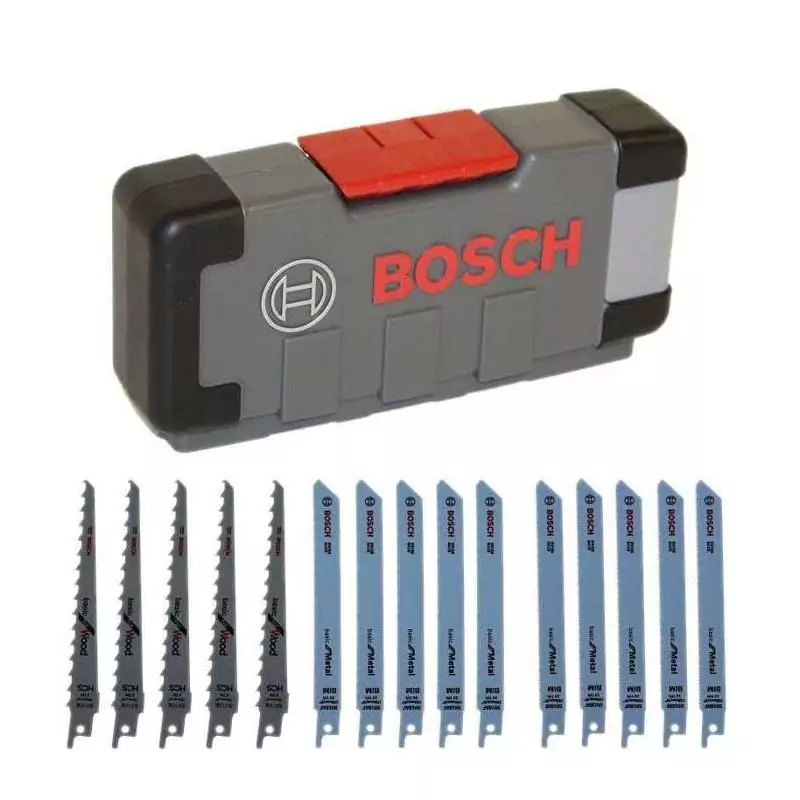 Optez pour les lames de scie sauteuse BOSCH Wood and Metal Basic pour des coupes impeccables et un travail efficace.** Profitez dès aujourd'hui de cet ensemble de lames polyvalent pour réaliser tous vos projets de bricolage avec facilité et précision.