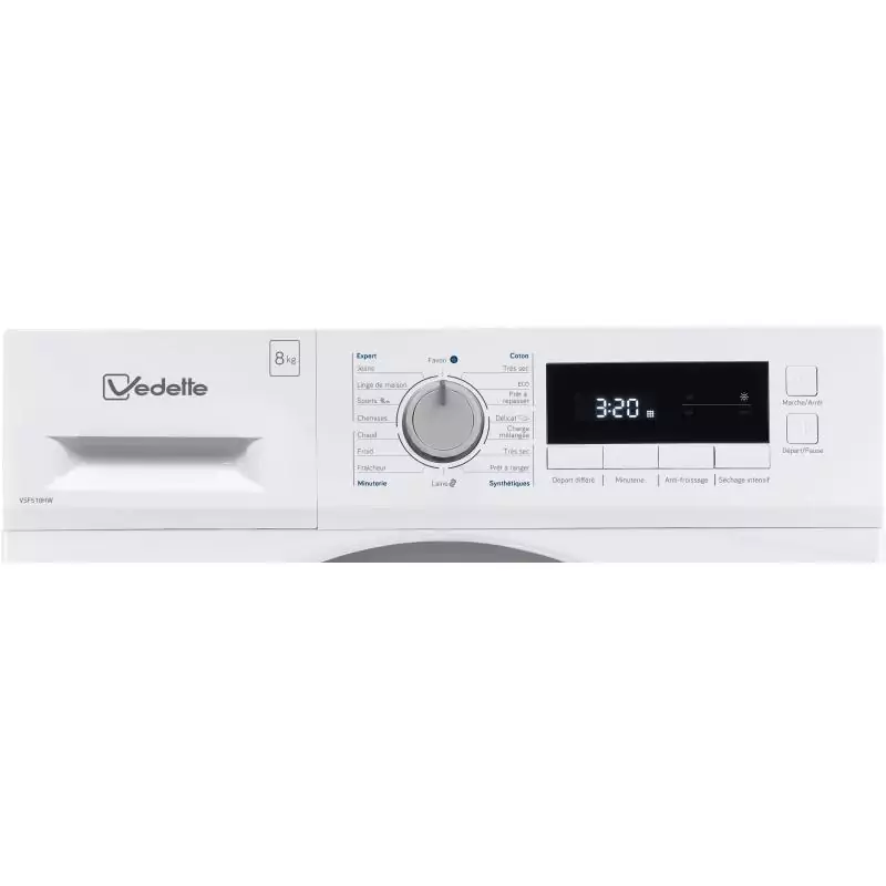 Seche-linge pompe a chaleur VEDETTE VSF518HW - 8 kg - Classe D - Blanc