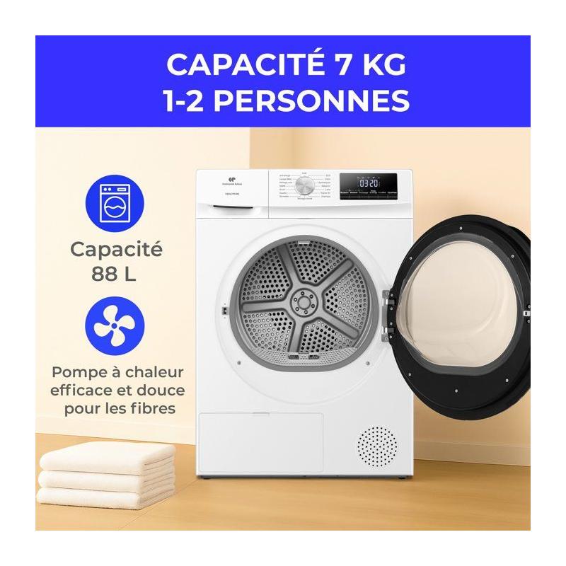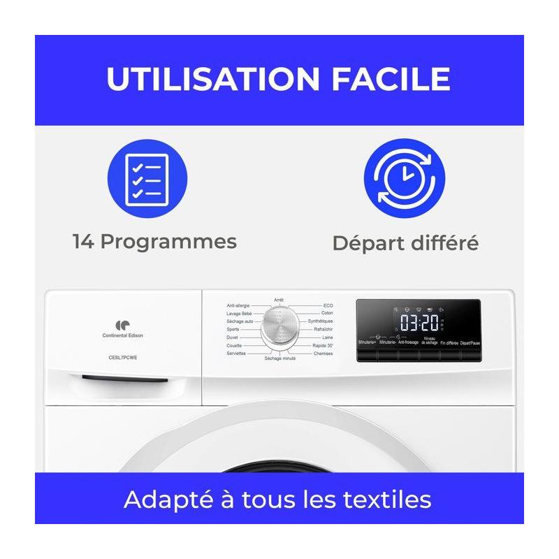 Seche-linge pompe a chaleur - CONTINENTAL EDISON - CESL7PCWE - 7 kg - 60 cm - Classe E - Blanc