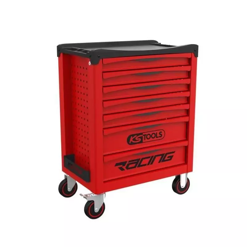 La Servante d'atelier vide RACING 7 tiroirs de la marque KS Tools (référence 855.0007) est l'outil parfait pour les professionnels et les passionnés de mécanique. Avec ses 7 tiroirs spacieux, cette servante vous permet d'organiser et de ranger efficacement vos outils et accessoires, facilitant ainsi votre travail au quotidien.