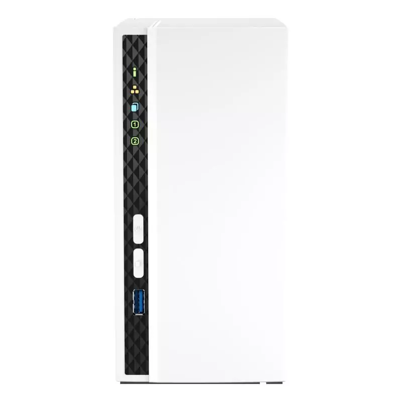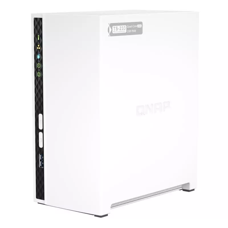 QNAP TS-233. Type: NAS. Type de châssis: Tower. Classe de dispositif: Domicile et télétravail. Famille de processeur: ARM, Modèle de processeur: Cortex-A55, Fréquence du processeur: 2 GHz. Mémoire interne: 2 Go. Capacité totale du stockage installé: 0 To. Système d'exploitation installé: QNAP QTS