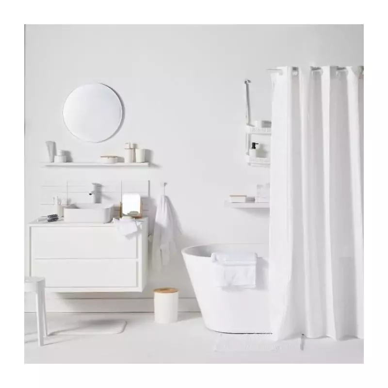 Le rideau de douche complète cet ensemble en apportant une touche de fraîcheur et de modernité à votre salle de bain. Son design épuré et sa couleur blanche lumineuse s'harmonisent facilement avec tout type de décoration.