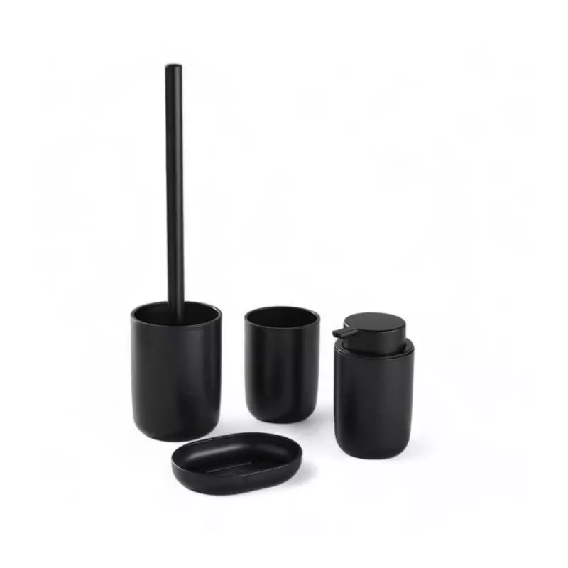 Ensemble de 4 accessoires de SDB - TODAY - UTILITY - Gobelet, distributeur savon, brosse WC - Black