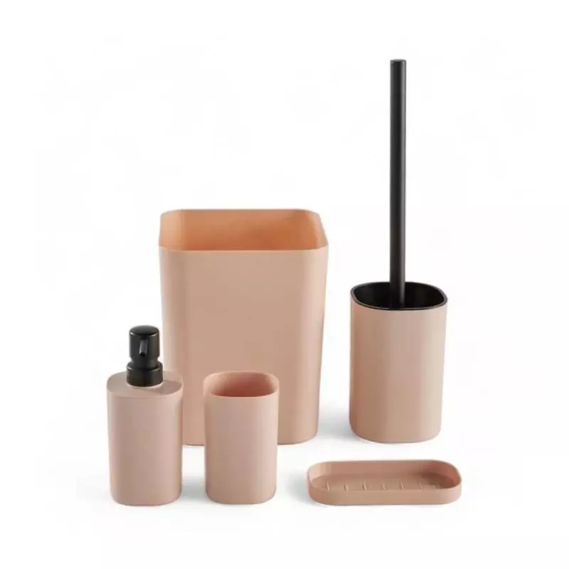 Transformez votre salle de bain en un espace organisé et élégant avec le Set de 5 acc SDB - TODAY - UTILITY - Distr de savon, porte-brosse a dents, porte savon, brosse WC, poubelle - Pink.