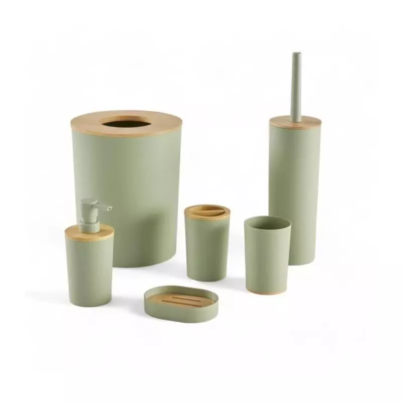 Lot de 6 acc SDB - TODAY - UTILITY - Dist savon, gobelet, porte-brosse a dents, porte savon, brosse WC, poubelle - Green