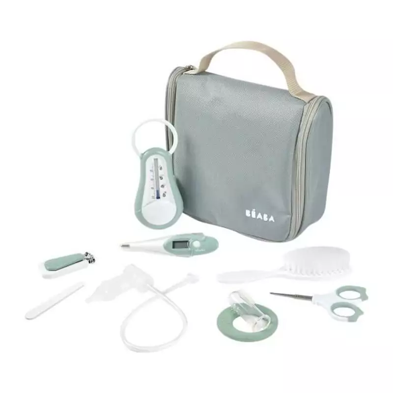 BEABA, Trousse de toilette bébé, nomade, 9 accessoires, vert sauge