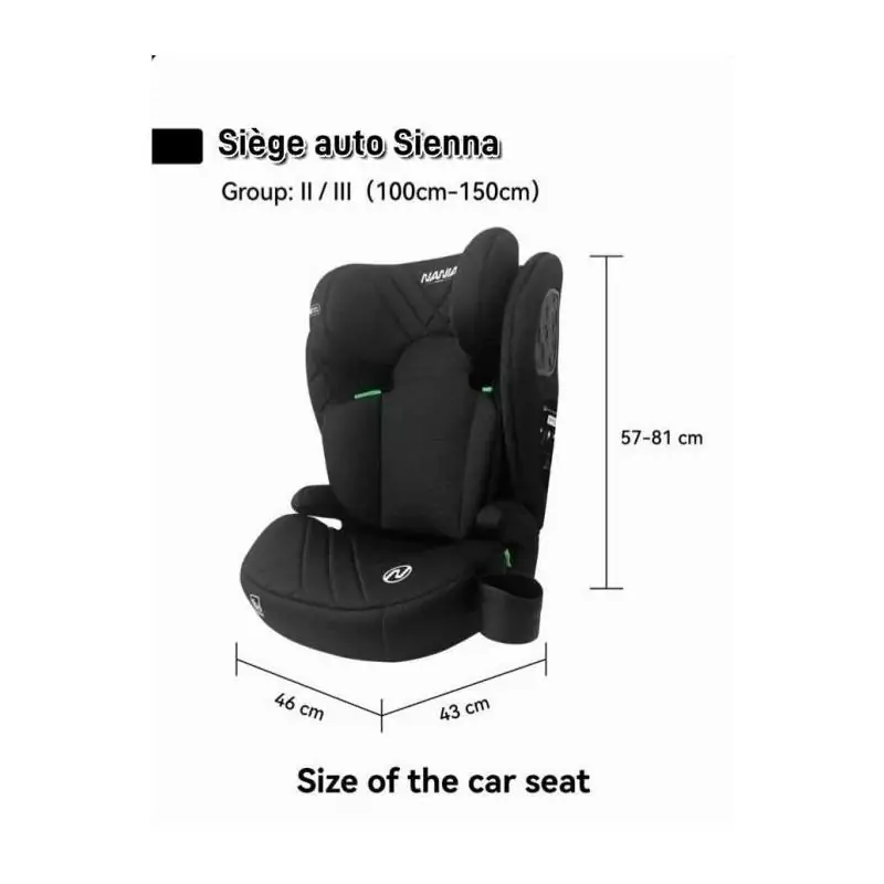 Le siège auto ceinturé NANIA SIENNA est un choix idéal pour les enfants du groupe 2/3, conforme aux normes i-Size. Avec sa couleur noire élégante, il offre non seulement une protection optimale à votre enfant, mais ajoute également une touche de style à votre voiture.