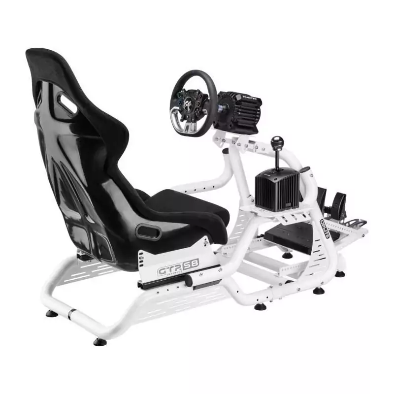 Cockpit de simulation - OPLITE - GTR S8 Infinity Force - Acier carbone - Blanc - Simracing haute performance
