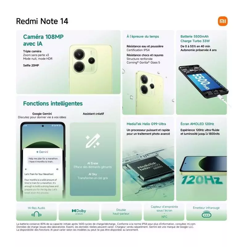 Xiaomi - Redmi Note 14 - 256 Go - Vert
