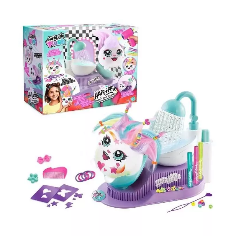 Le Canal Toys - Airbrush Plush - Salon de coiffure Hair'iffic - AIR 044 est un kit complet pour les enfants qui souhaitent exprimer leur créativité en décorant leurs propres peluches. Ce produit innovant offre une expérience ludique et éducative, idéale pour les enfants qui aiment l'artisanat et la personnalisation.