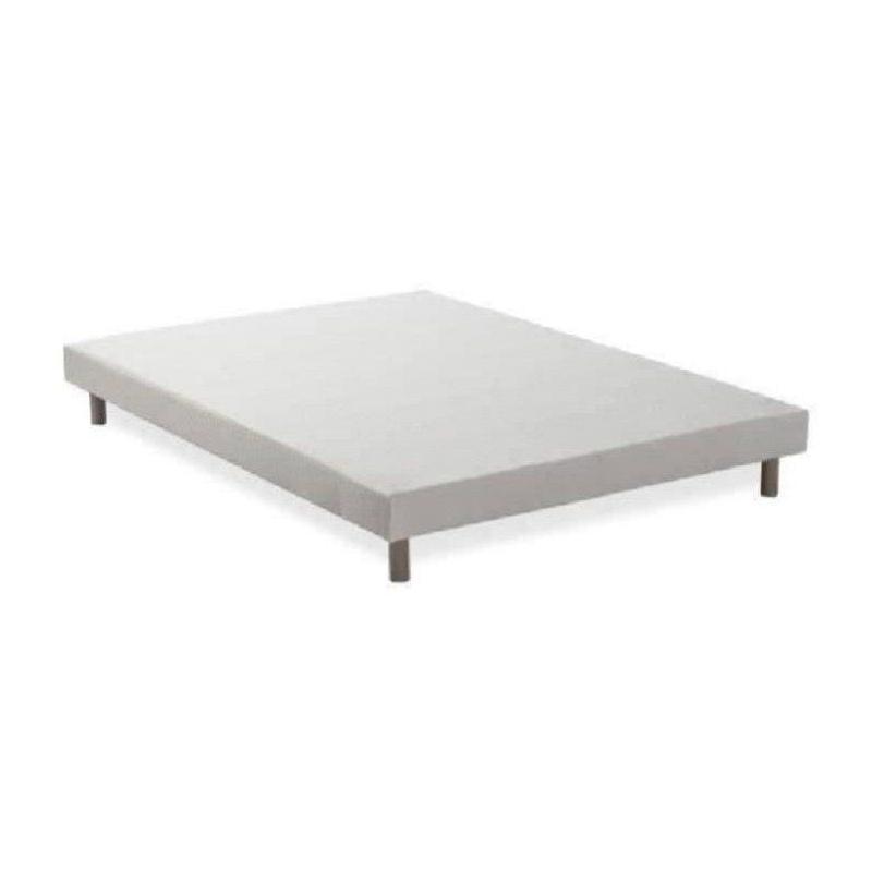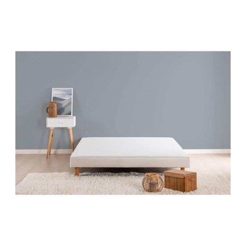 Sommier tapissier a lattes 140 x 190 cm - Bois massif blanc + Pieds - DEKO DREAM Rakenne
