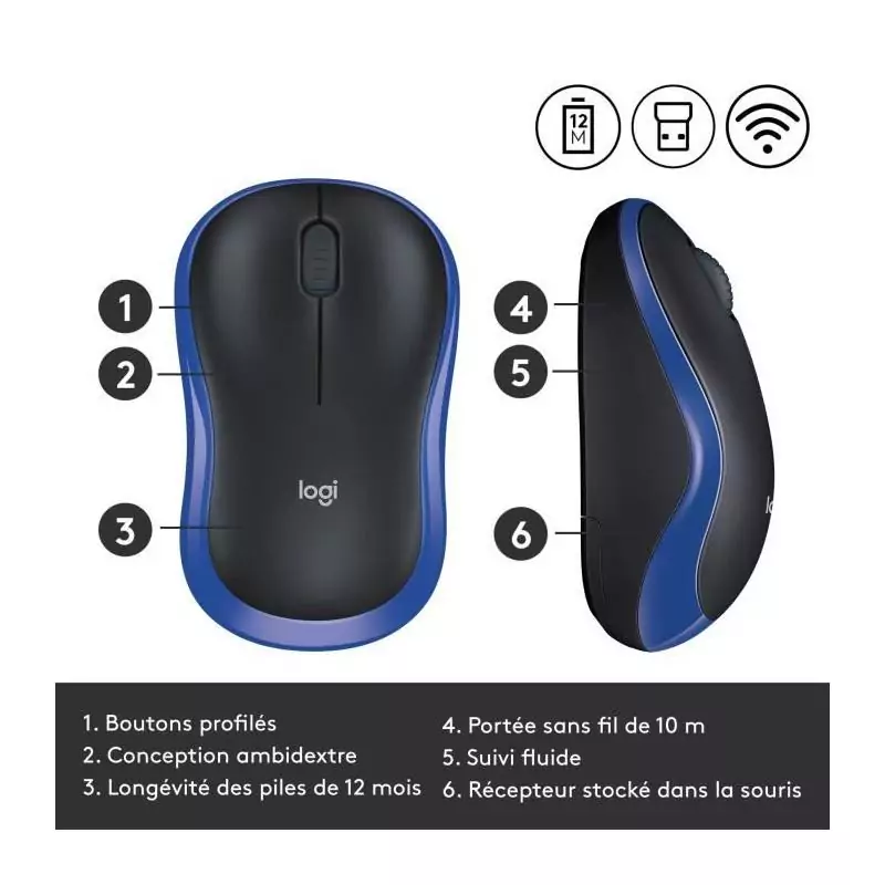 Souris - Sans fil - Logitech - M185 - Bleu - Ambidextre