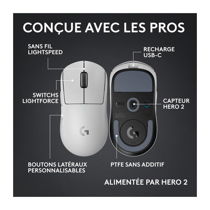Souris - Sans fil - Logitech G - PRO X Superlight 2c - Blanc