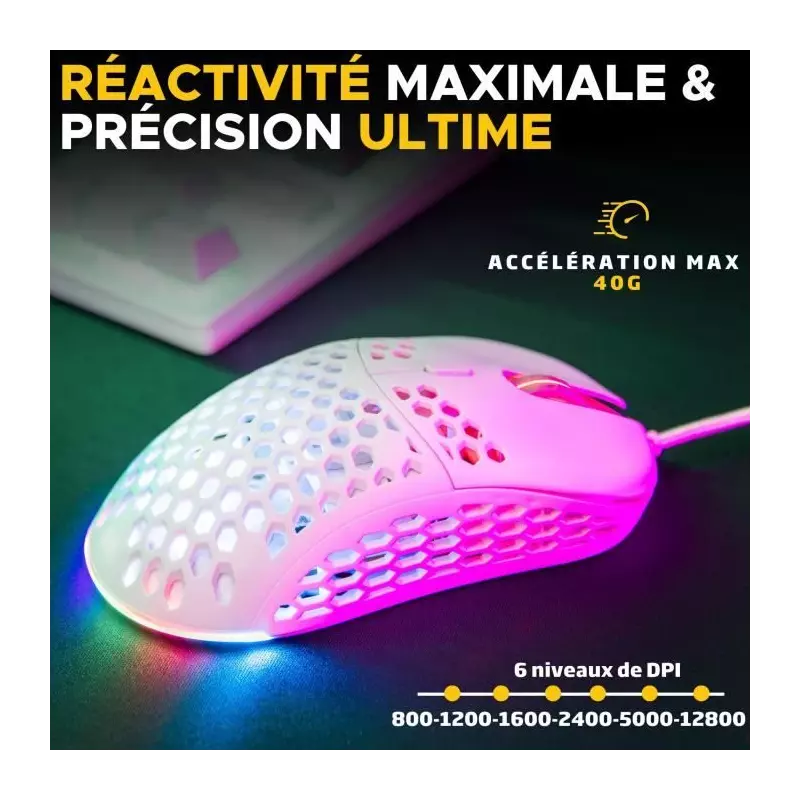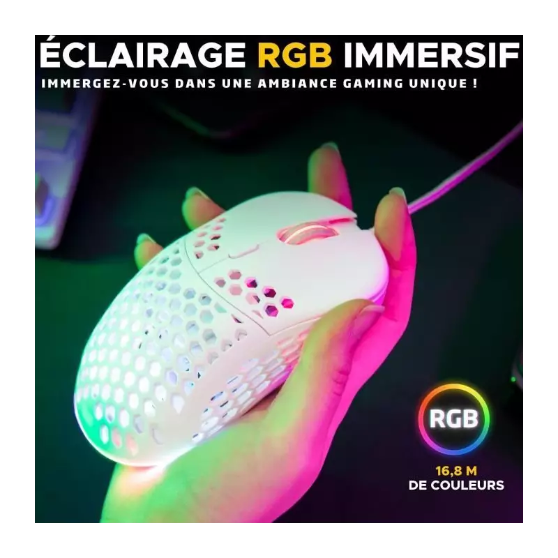 La Souris Gamer filaire The G-Lab KULT-OXYGEN est un accessoire incontournable pour tous les passionnés de jeux vidéo. Dotée d'un design moderne et élégant en couleur Blanc, cette souris saura vous séduire par son ergonomie et ses performances exceptionnelles.