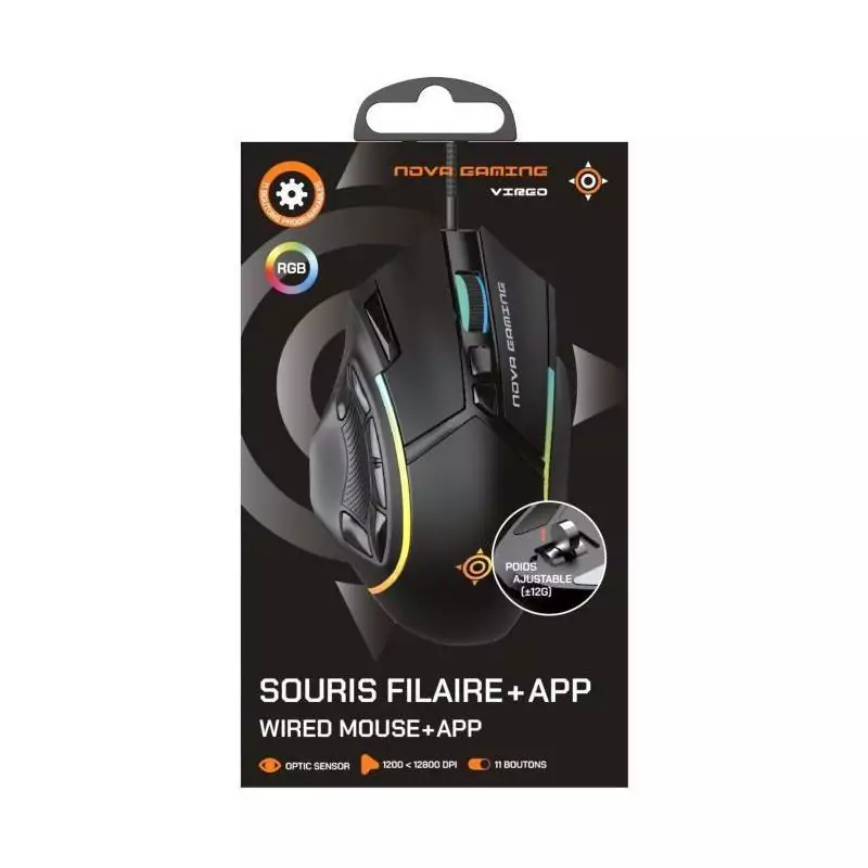 Souris gamer - Filaire - Nova Gaming - Virgo - LED RGB - Noir