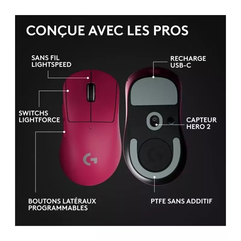 N'attendez plus pour mettre la main sur cette souris exceptionnelle et améliorer significativement votre expérience de jeu. Optez pour la performance, le style et la qualité avec la souris Logitech G Pro X Superlight 2 DEX en rose dès aujourd'hui!