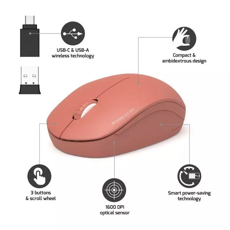 Grâce à sa connectivité 2,4 GHz, vous pouvez dire adieu aux câbles encombrants et profiter d'une liberté de mouvement maximale. Que vous soyez au bureau, à la maison ou en déplacement, cette souris compacte vous accompagnera partout.
