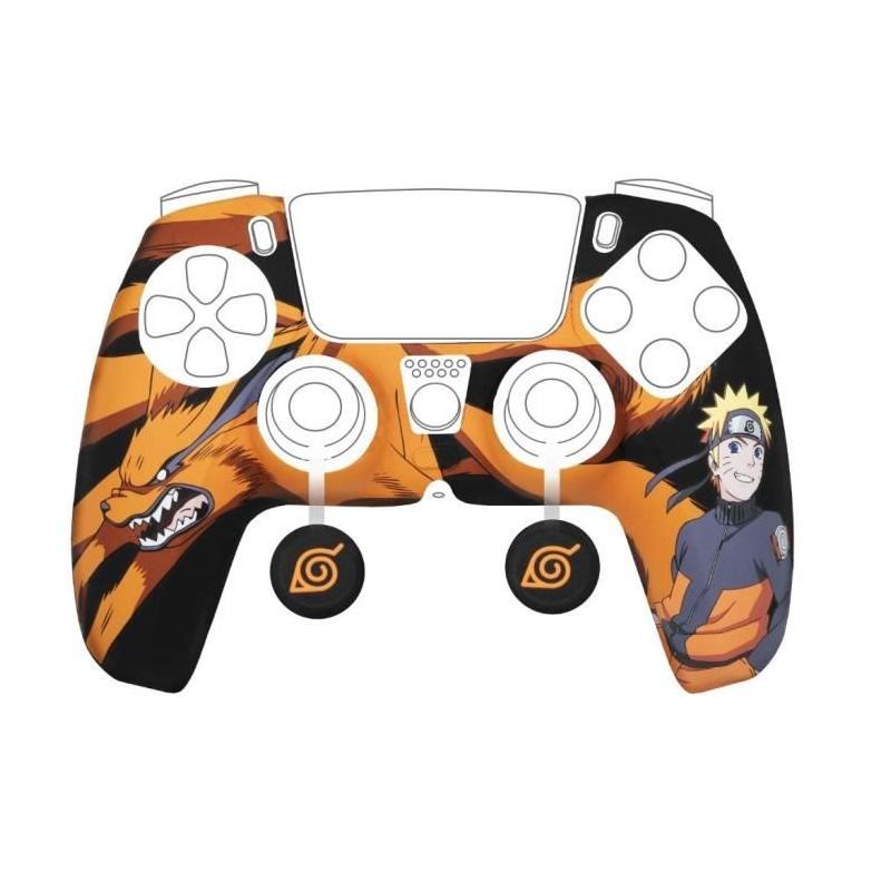 Coque de protection pour manette - KONIX - Naruto Shippuden - DualSense PS5 - Silicone - Motif Kurama/Kyûbi et Naruto - Noir