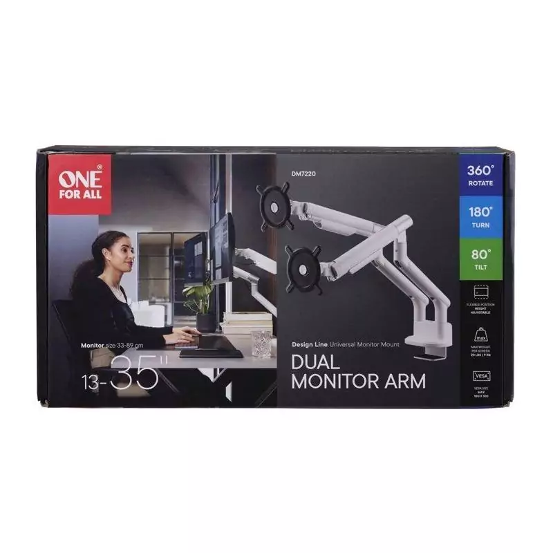 Support moniteur - ONE FOR ALL - Dynamic - Vesa 100 - Double Bras - 13 a 35'' - Blanc