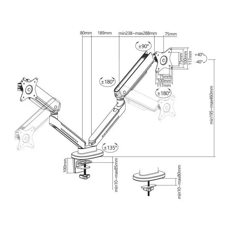Bras articulés double - OPLITE - MT10 - Noir - Ergonomique - Réglable - Compatible VESA