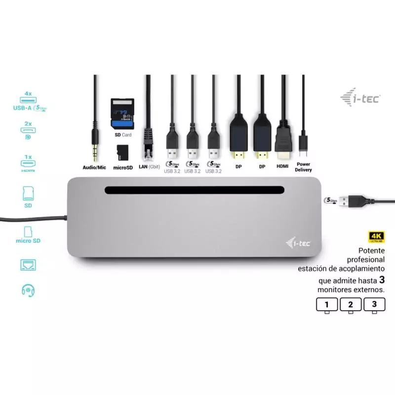 Hub USB-C i-Tec C31FLAT2PDPRO Argenté