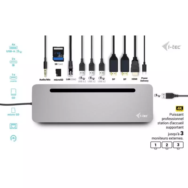 Le Hub USB-C i-Tec C31FLAT2PDPRO Argenté est l'accessoire indispensable pour étendre les fonctionnalités de votre ordinateur. Avec un port HDMI, quatre ports USB 3.2 Gen 1 de type A, et une interface hôte USB 3.2 Gen 1 de type C, ce hub vous permet de connecter facilement plusieurs appareils en même temps.