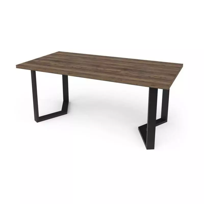 Le décor en mélamine chêne saloon confère à cette table une allure chic et intemporelle, idéale pour compléter divers styles de décoration intérieure. Les pieds en V noir ajoutent une touche de contraste audacieuse tout en assurant une stabilité optimale.