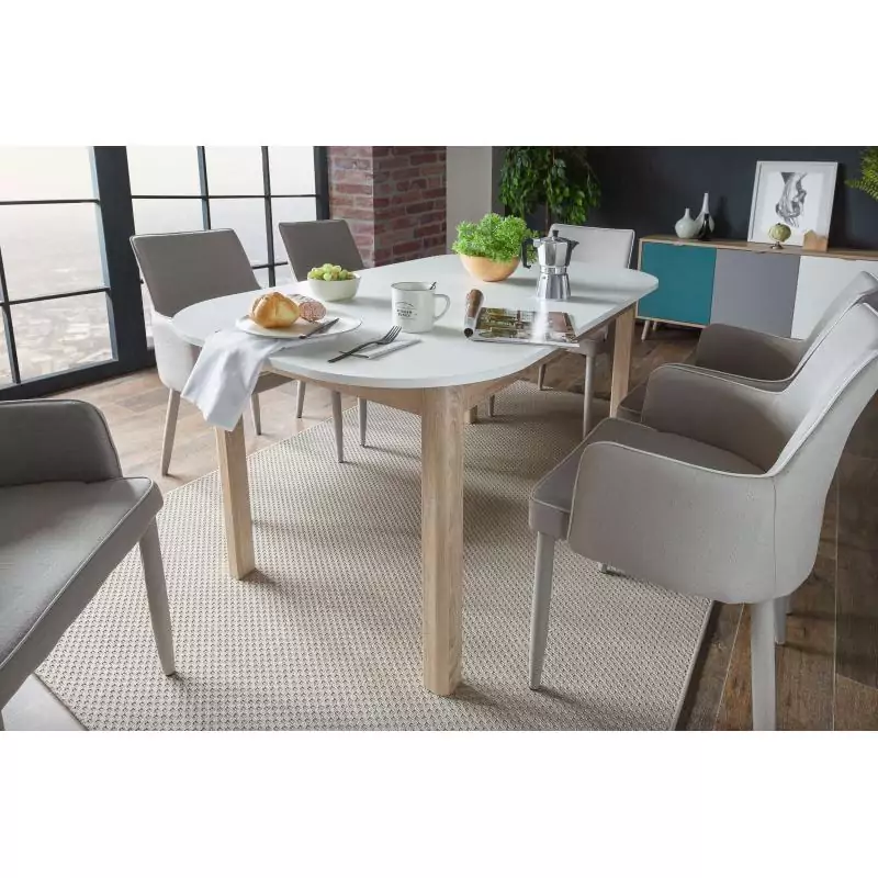 Table a manger extensible - KAYRI - Rectangulaire - Chene Sonoma / Blanc - 4 a 6 personnes - 120-160 x 76 x 90 cm