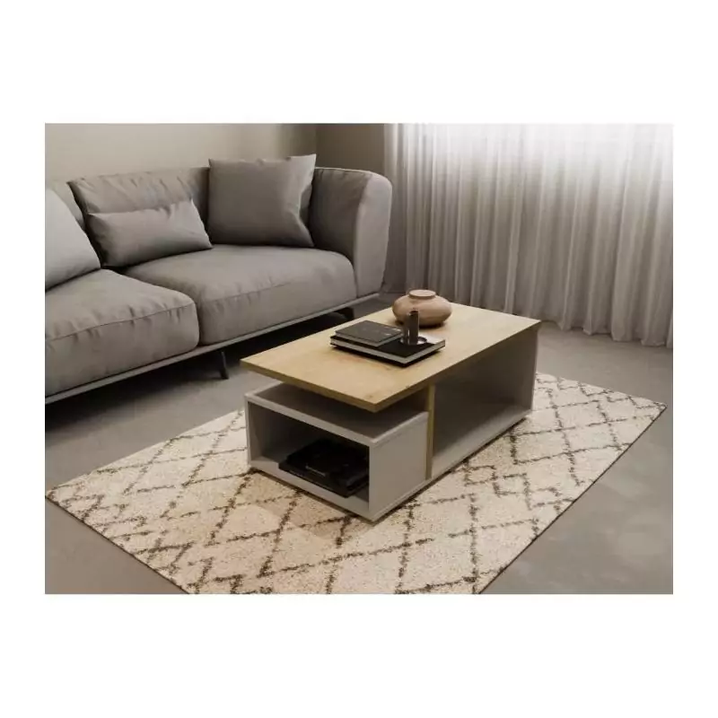 Table basse rectangulaire ACCESS - 3 Niches - Décor chene Hamilton et blanc - L 91,8 x P 50 x H 36 cm - DEMEYERE